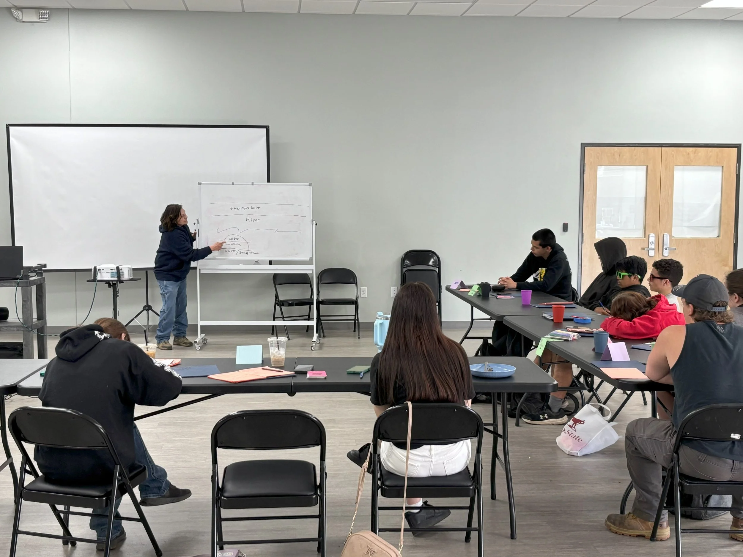 The training required for an individual to work in fire is a significant undertaking typically involving 32 hours of classroom and field learning. In an effort supported by the Karuk Tribe Department of Natural Resources (KDNR) Pikyav Field Institute, Happy Camp High School (HCHS), and the Mid Klamath Watershed Council (MKWC), the Basic 32 training was offered in Happy Camp in April 2025 as a special course for high school students and recent high school graduates. Lead fire staff from KDNR and MKWC guided students through the coursework covering Basic Wildland Behavior (S190), Wildland Firefighter Training (S-130), and Human Factors in Wildland Fire (L-180). Students learned to understand fire through observations of clouds, wind, and terrain. They learned strategies for staying safe while working with wildfire and techniques for managing it. They practiced measuring weather data, deploying fire shelters, and digging fire lines. Students developed teamwork and situational awareness skills, and they earned a lifetime certification that makes them eligible for employment in prescribed fire and wildland firefighting.